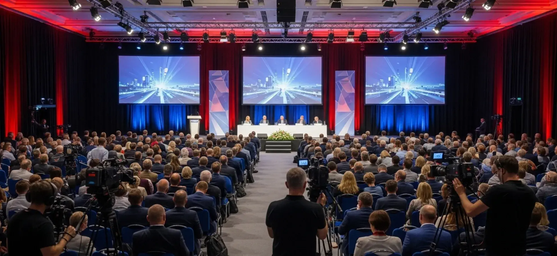 Перед установкой мы просчитываем акустику зала, точки обзора, плотность трафика в зонах движения и требования к онлайн-вещанию. Настройки зависят от сценария: будь то параллельные потоки, подключение международных спикеров или прямая трансляция.