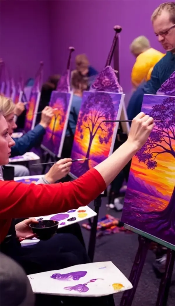 Мастер-класс по рисованию акрилом можно провести где угодно: в офисе, в ресторане, на выездной площадке. Мы все устроим и организуем рабочее пространство, чтобы участникам было удобно и приятно творить.
