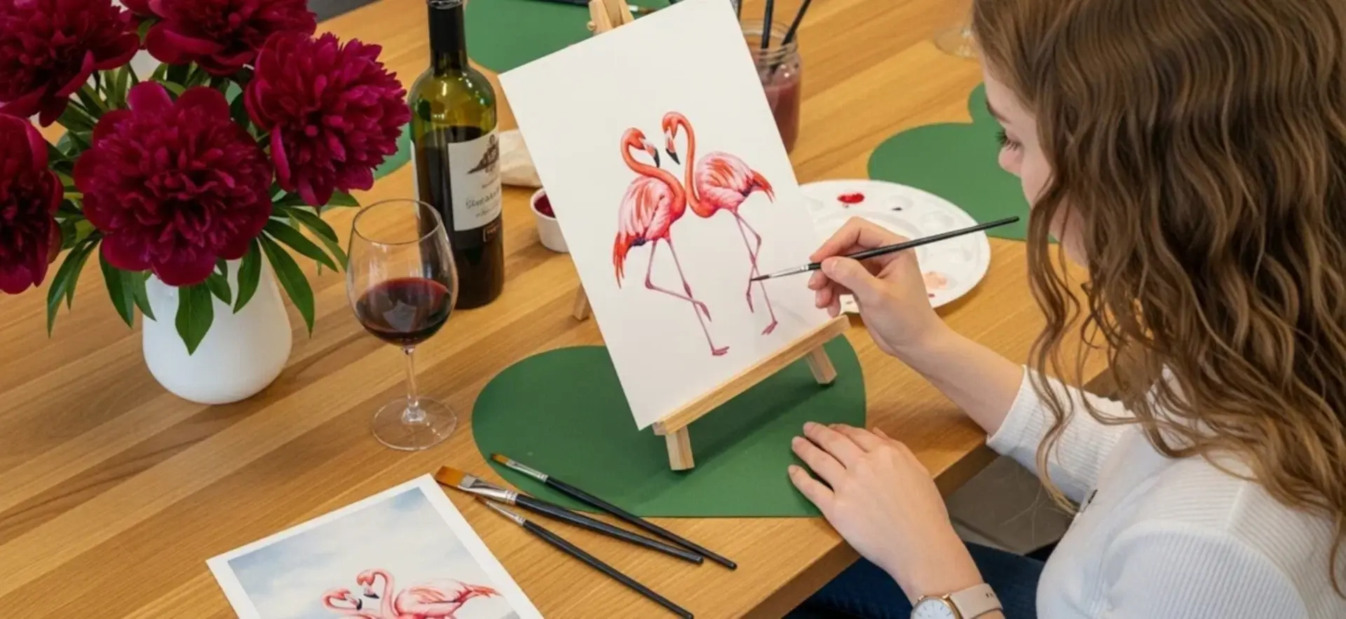 - Для девичника такой арт-опыт превращается в эстетическое развлечение: бокалы вина, легкий аромат напитка, мягкий свет и процесс создания собственной картины создают уют и вдохновение. Это возможность по-настоящему насладиться красотой момента в компании подруг.