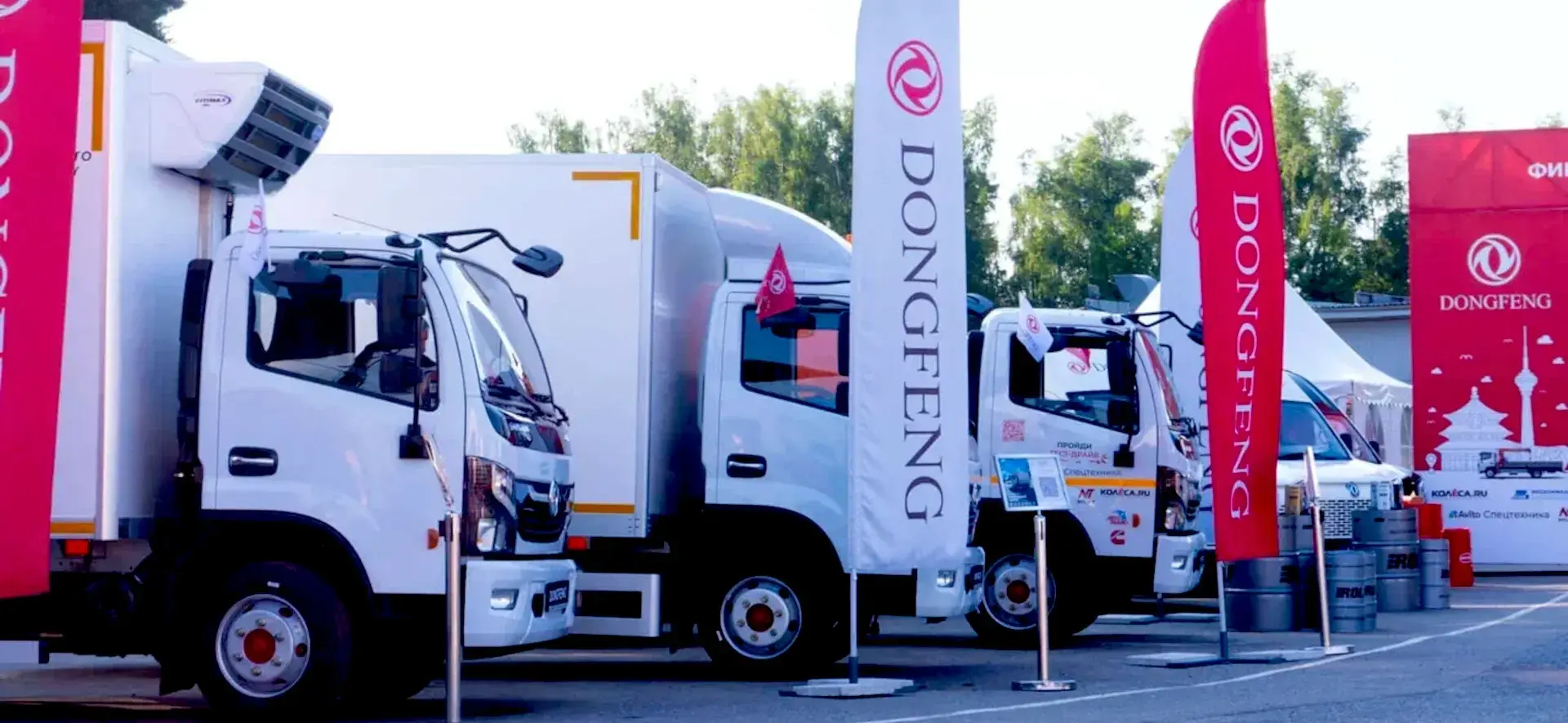 На территории трассы был установлен просторный шатёр, оформленный в фирменной айдентике Dongfeng. Брендированные флаги и арочные ворота на въезде создавали эффект масштабного события, а техническое оснащение обеспечивало качественный звук и визуальную поддержку программы.