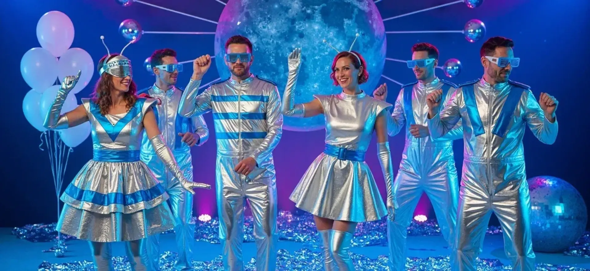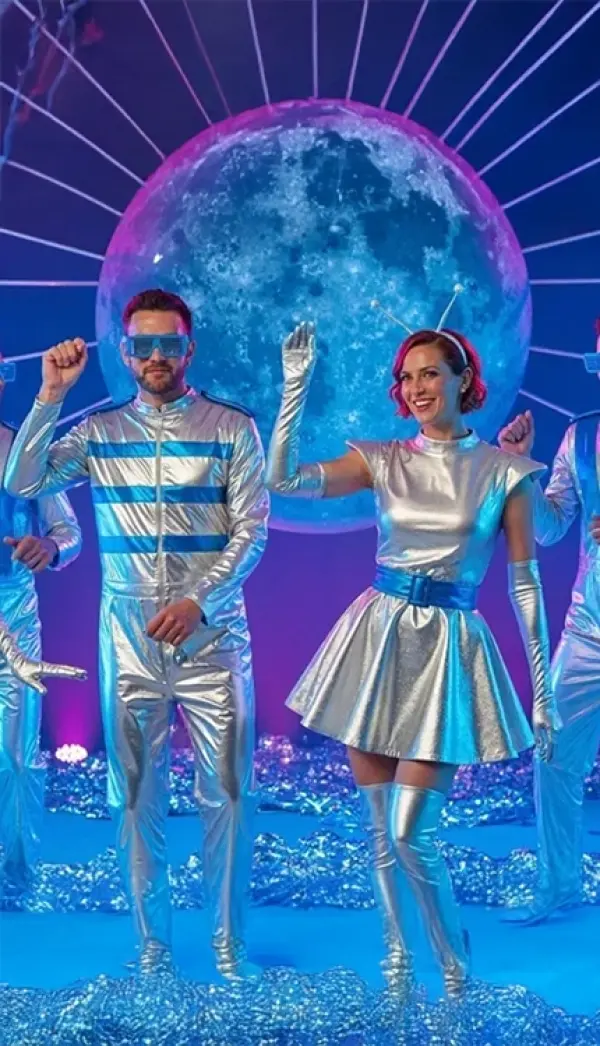 Вы можете прийти в готовом образе или доверить его нам — мы подскажем, где арендовать костюмы для космической вечеринки и как адаптировать наряд под мероприятие. Если нужно, соберем костюмерную зону прямо на площадке. Все зависит от Вашего желания — можно просто добавить акцент в виде космических аксессуаров, а можно полностью погрузиться в роль.